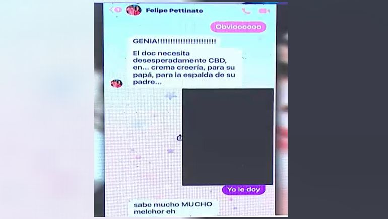 La presunta charla continúa con un pedido. “El doc. necesita desesperadamente CBD (cannabis medicinal), en crema creería, para su papá, para la espalda de su padre”, dice el chat. “Yo le doy”, responde su amiga. “Sabe mucho, mucho, Melchor, eh”, le contesta Felipe.