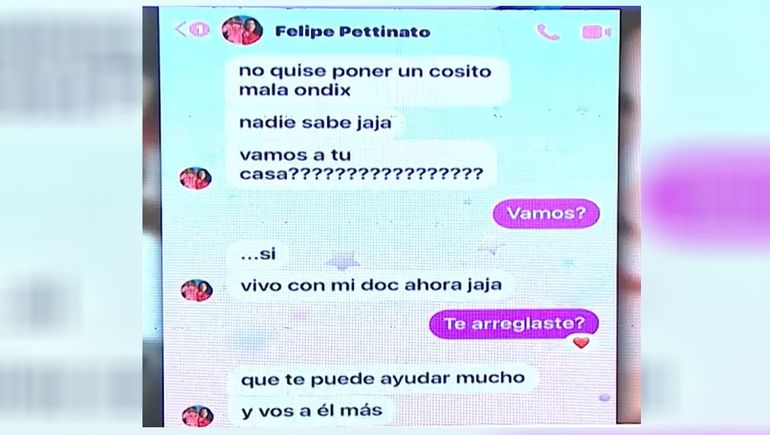 Para comprobar esto, una amiga de Pettinato, Agostina, quien ya habló con Intrusos, le envió al ciclo chimentero una serie de captura de pantalla de una conversación entre ella y Felipe, en la cual el joven se muestra muy cercano a Melchor Rodrigo.