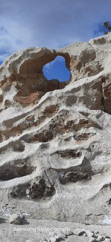 "Hace dos millones y medio de años, un macro volcán entró en erupción y las cenizas se depositaron en un lecho seco de un río. Ese macro volcán implosionó y formó la laguna de Caviahue y una de las fumarolas es hoy el volcán Copahue. Después, en la época de la glaciación, dos glaciares chocaron en el Pacífico, empujaron y formaron la Morena de Palo Parado, que está frente a Caviahue. Se dividió en dos: bajando por la izquierda a la Cascada del Agrio y, por la derecha, trazando la huella de Hualcupén. Cuando se derritió el glaciar, hará unos diez o quince mil años, el viento lo fue erosionando y hoy tenemos los riscos de ceniza compactada por los glaciares y erosionada por el viento", sintetizó Carine Ridson, una de las propietarias del establecimiento agroturístico, haciendo gala de los conocimientos que desplegaba años atrás cuando acompañaba a los contingentes que recibía en su campo a caminar por las cautivantes formaciones geológicas, comparables solamente con las que se encuentran en México y en Capadocia, Turquía (declaradas por la Unesco patrimonio de la humanidad por la Unesco en 1985).