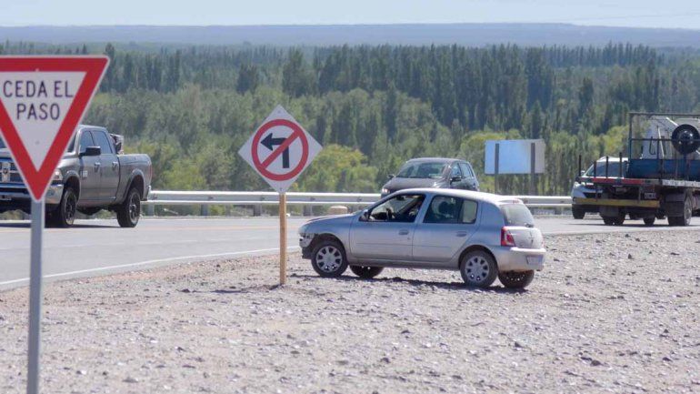 Tanto los que viajan desde Cipolletti y quieren ingresar a Neuquén como los autos y motos neuquinos que quieran tomar la Autovía Norte evitan hacer más largo el viaje y esperan en la banquina para poder girar a la izquierda sobre la ruta. Para eso, hacen señas de luces o con la mano para que los autos que circulan por la calzada les den el paso, en una arriesgada maniobra que puede terminar en un grave choque.