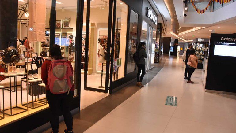 - Hay que mostrar el DNI en el ingreso al shopping y llevar tapabocas que cubra de la nariz al mentón. Un guardia rocía las manos con alcohol y toma la temperatura.