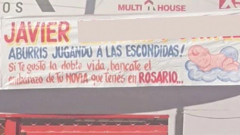“Javier: Aburrís jugando a las escondidas! Si te gusto la doble vida, bancate el embarazo de tu novia que tenés en Rosario”, relataba el pasacalles que se volvió viral, junto a un pintoresco dibujo de bebé.