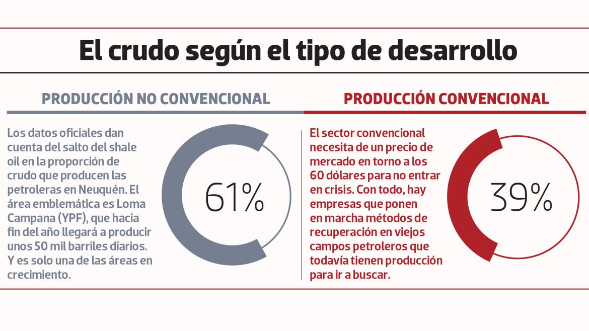 En el caso del petróleo, el 13,5% es no convencional, mientras que el 86% restante es convencional. En el gas, la producción no convencional ya se acerca al 35% y la convencional, al 65%.