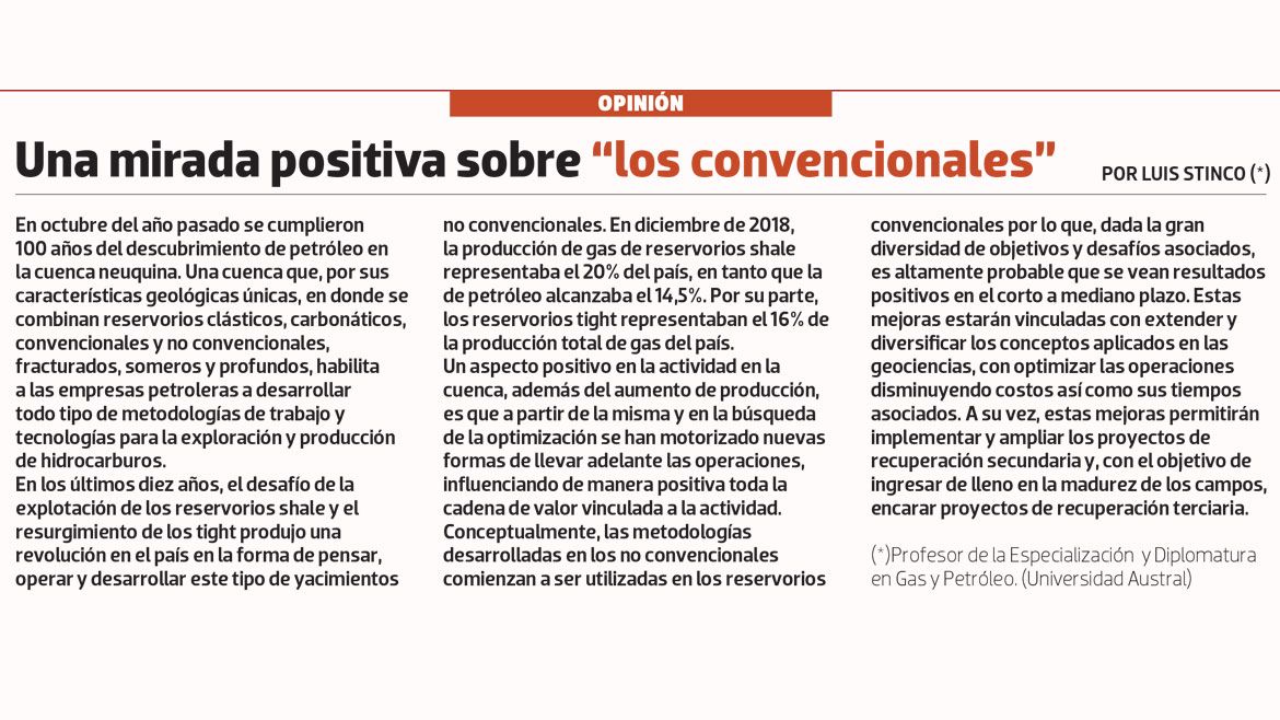 En definitiva, puede haber más exploración convencional y son las empresas productoras pequeñas y medianas las que, si se dan las condiciones, ven el nicho para poder crecer. En paralelo, el boom de la producción y las inversiones se los seguirán llevando los no convencionales.