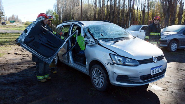Los daños, afortunadamente, sólo fueron materiales. Los bomberos debieron quitar por completo la puerta delantera del lado del acompañante, que impactó fuertemente con la parte trasera del vehículo militar.