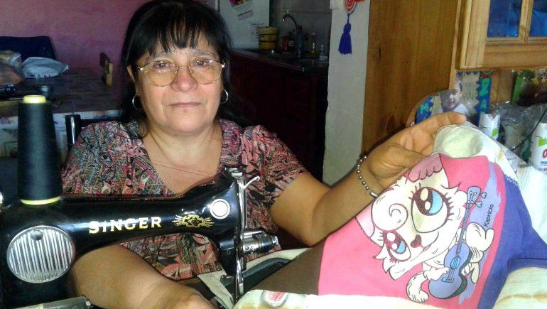 Hoy, con ropa usada confecciona acolchados para las familias de menos recursos. Un gesto digno de destacar en estos tiempos difíciles.