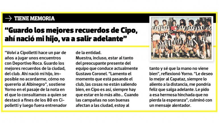 Son los propios hinchas de Cipo cercanos a quien escribe estas líneas los que alientan a regalarle un buen espacio en esta ascendente sección a Marcelo Yorno.