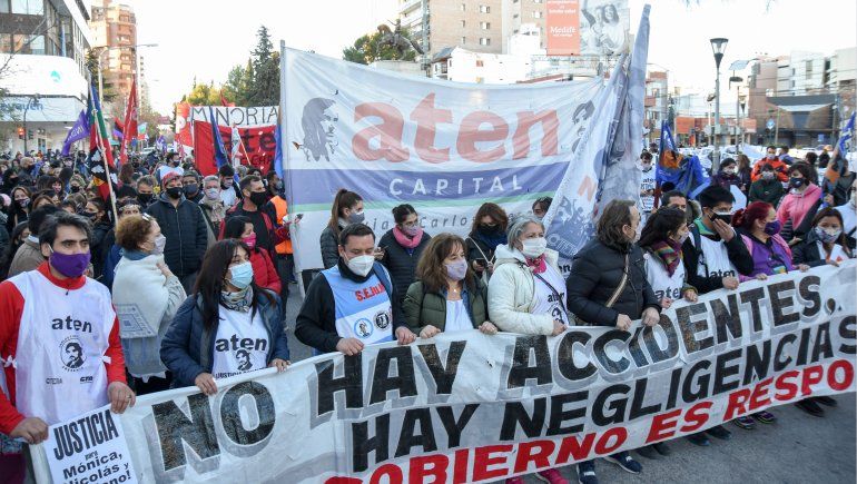 "Estamos marchando con mucha bronca, con mucha impotencia. ATEN vuelve a pisar las calles para pedir justicia por la muerte de la compañera Mónica Jara y también por los operarios Mariano y Nicolás", comenzó el discurso del gremio al inicio de la manifestación.