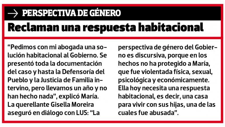 Por el tema de la vivienda, María sufrió amenazas telefónicas y hasta le cayeron en malón a la casa para intentar sacarla. Ella se resistió porque no tiene dónde ir y su abogada Gisella Moreira advirtió a la Justicia el riesgo que corría.