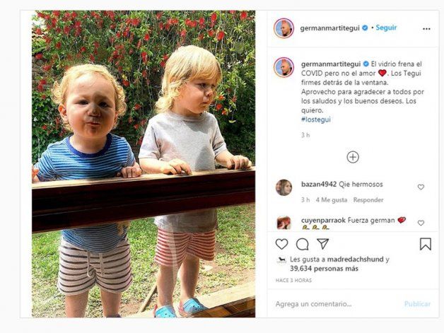 Este sábado y tras nueve días sin poder abrazar a sus hijos, el jurado de MasterChef sorprendió al compartir en su cuenta de Instagram una foto en la que se ve a las criaturas apoyando la nariz contra un ventanal, como tratando de acercarse a él. Y sus caritas dejan más que claro cuánto extrañan el contacto con su padre. “El vidrio frena al Covid pero no el amor. Los Tegui firmes detrás de la ventana. Aprovecho para agradecer a todos los por saludos y los buenos deseos. Los quiero”, escribió el chef junto a la tierna imagen.