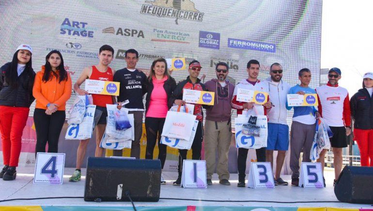 Al podio de las carreras de media maratón subieron los atletas Roxana Flores, de Zapala, en 1,22 horas, también ganadora de ediciones anteriores de Neuquén Corre, y otro conocido deportista, Alberto Bravo, de Allen, quien recorrió 21 K en 1,02 horas.