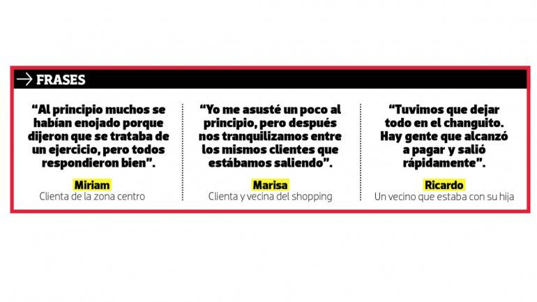 A través de los parlantes, primero les pidieron a los clientes que se acercaran rápidamente a las cajas para pagar sus mercaderías. Dijeron que se trataba de un “ejercicio” controlado por la Policía. Pero luego directamente solicitaron que abandonaran el lugar sin nada.