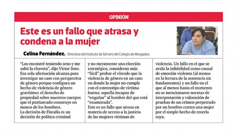 Este es un fallo que atrasa y condena a la mujer. Celina Fernández directora del instituto de género del colegio de Abogados