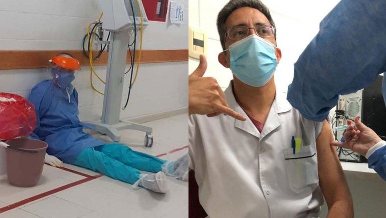 El primer profesional en aplicarse la vacuna rusa fue Cristian Díaz, un médico cirujano que trabaja en el área Covid del hospital Complejidad VI de Cutral Co y que fue protagonista de una foto que recorrió todo el país. En la imagen, se lo ve recostado en el suelo y agotado después de haber intubado a un paciente afectado por el coronavirus,