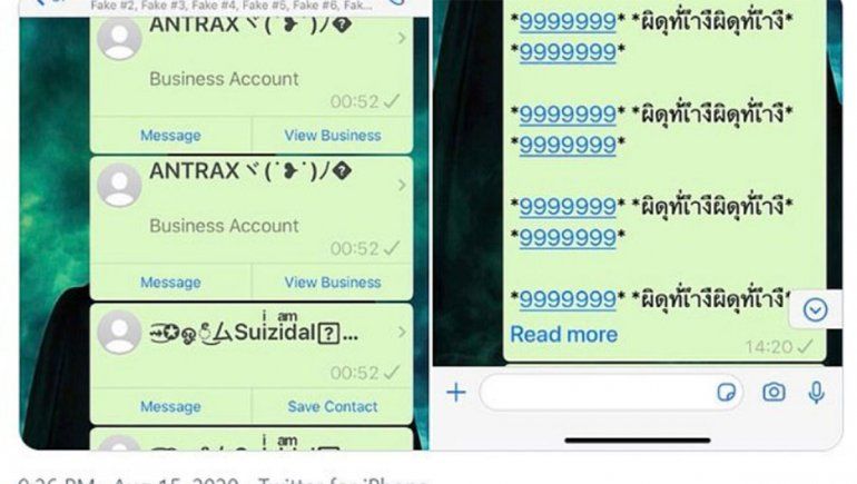 Una nueva amenaza acecha a los usuarios de WhatsApp, el servicio de mensajería instantánea mas popular del mundo. En las redes sociales usuarios alertaron sobre un mensaje que esconde un código malicioso. De esta manera, un usuarios recibe un mensaje y al abrirse, los mensajes, que contienen una larga cadena de números y caracteres desconocidos, hacen que WhatsApp se congele.