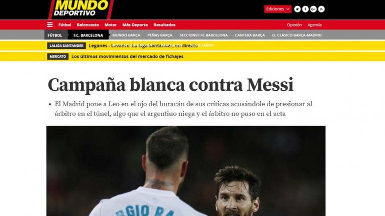 "Campaña blanca contra Messi", tituló Mundo Deportivo, mientras que en otra nota el mismo diario le apuntó al capitán del "merengue".