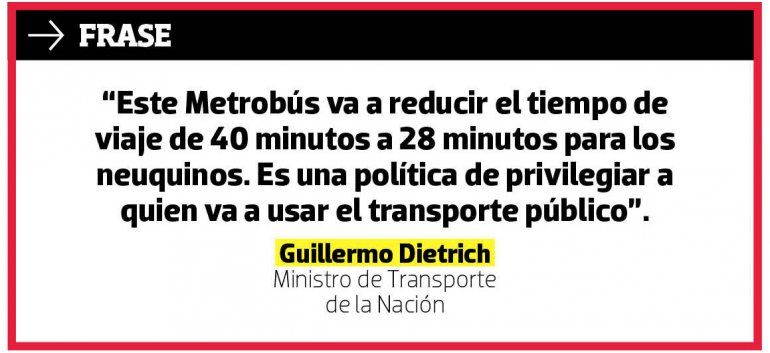 En la conferencia que el ministro Dietrich ofreció ayer en el aeropuerto, manifestó que el proyecto en cuestión será un tema de debate en próximas reuniones con referentes provinciales. Además, sostuvo que en la breve visita a Neuquén trajo a los especialistas para analizar el avance del Metrobús.