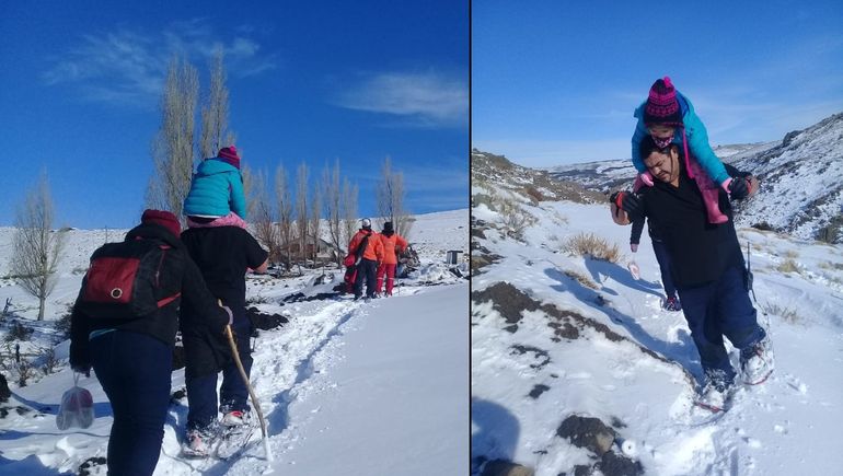 Ante el llamado de alerta, dos enfermeros del hospital, tres efectivos de defensa civil y otros tres de bomberos fueron hasta el lugar. "Llegamos con el vehículo hasta donde la nieve nos dejó y estacionamos la camioneta. Nos pusimos las raquetas y arrancamos a caminar. Fueron 10 kilómetros en montaña y dos metros nieve, entre ida y vuelta".