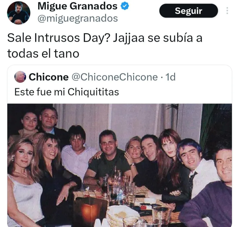 Y es que Migue posteó: “¿Sale ‘Intrusos Day’?”, sobre una foto en la que se puede ver el antiguo equipo del reconocido programa de chimentos.
