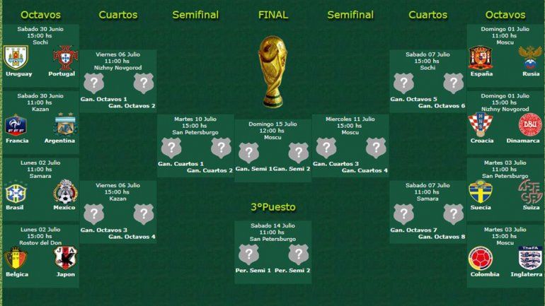 El partido inaugural de los playoffs se dará el sábado con dos candidatos al título: Argentina y Francia se encontrarán en el Kazán Arena, desde las 11. El mismo día habrá otro duelo estelar: Uruguay enfrentará a la Portugal que comanda Cristiano Ronaldo en Sochi desde las 15.