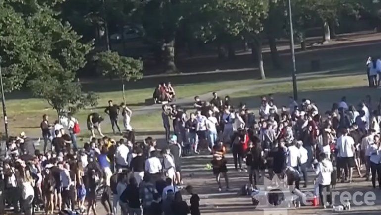 "Qué haces con el barbijo, che?", es una de las preguntas que recibe un joven de parte de un grupo de amigos, que lo cuestiona por sus recaudos, en la secuencia que muestra el video.