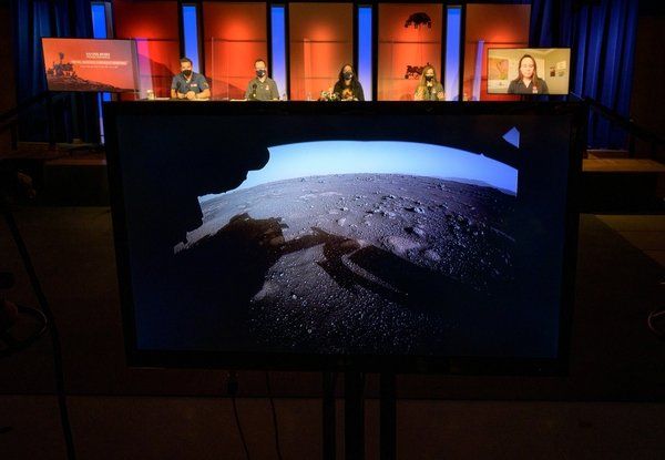 Científicos de la NASA dan a conocer la primera imagen a color del rover desde Marte en el Propulsion Laboratory Pasadena, California, U.S. February 19, 2021.