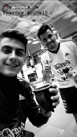 También el Huevo, que comparte tiempo y mates con sus compañeros en Rusia, fue protagonista de una foto posteada en una de las historias de Instagram del cordobés Paulo Dybala, en el que comparte un amargo cebado por el zapalino que ilusiona a toda una provincia.