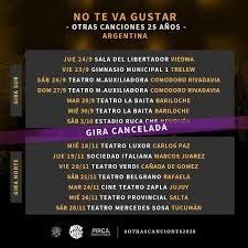 Por su parte, todos los eventos del Estadio Ruca Che, en donde será centro de vacunación contra el COVID, tenía organizado una cierta cantidad de recitales. El primero y más importante en suspenderse fue el de No te va a gustar. Estaban previsto tocar para el 21 de marzo en el estadio Ruca Che, fue suspendido.