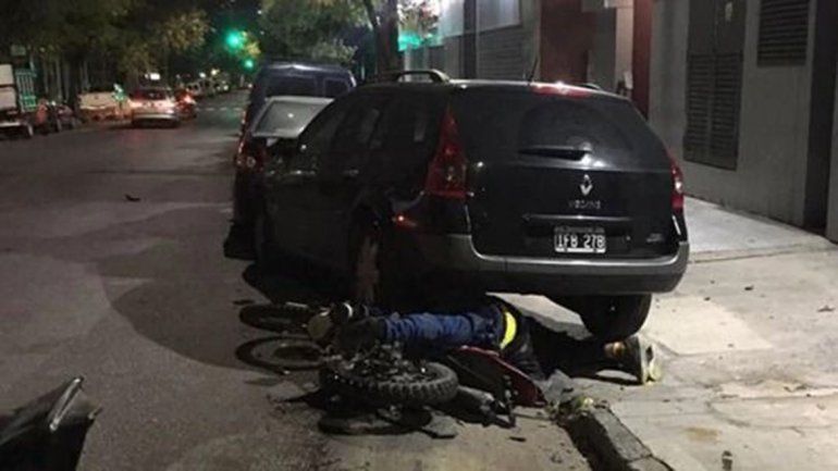 Fuentes policiales informaron a Télam que todo comenzó cuando dos "motochorros" interceptaron a la conductora de un Peugeot 207 que iba junto a otra mujer. En ese momento, uno de los delincuentes le arrebató su teléfono celular y escapó rápidamente pero la automovilista comenzó a perseguirlo. Según las fuentes, la mujer embistió la moto y el que la conducía perdió el control, tras lo cual impactó contra un Renault Megane que estaba estacionado.