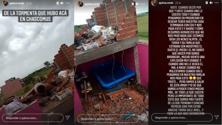 "Fue algo horrible, estábamos acá en casa y venía una tormenta, pero no pensamos que era para tanto. Yo me puse a ver el viento que era como un remolino y cuando le digo 'mirá Sole', explotó todo", arrancó relatando la cantante a través de una videollamada.