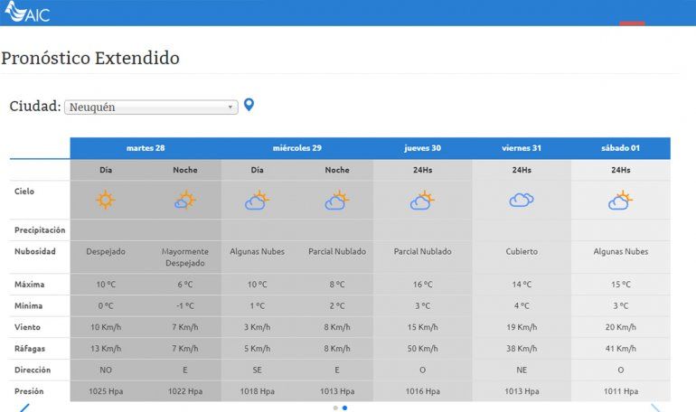 El jueves, por su parte, el cielo estaría parcialmente nublado con ascenso de temperatura. La AIC indica que para esa jornada la temperatura alcanzaría los 16°C. También ese día, el viento dirá presente: será del oeste con ráfagas de hasta 50 km/h.