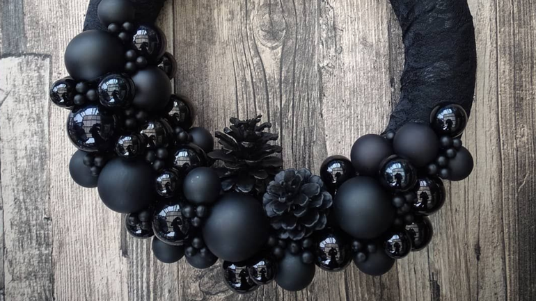 Otro de los elementos en los que se incorpora el negro es en las coronas que se decoran con piñas doradas, guirnaldas con cintas negras y doradas o envoltorios de regalo en negro mate con moños plateados, suman sofisticación al espacio.