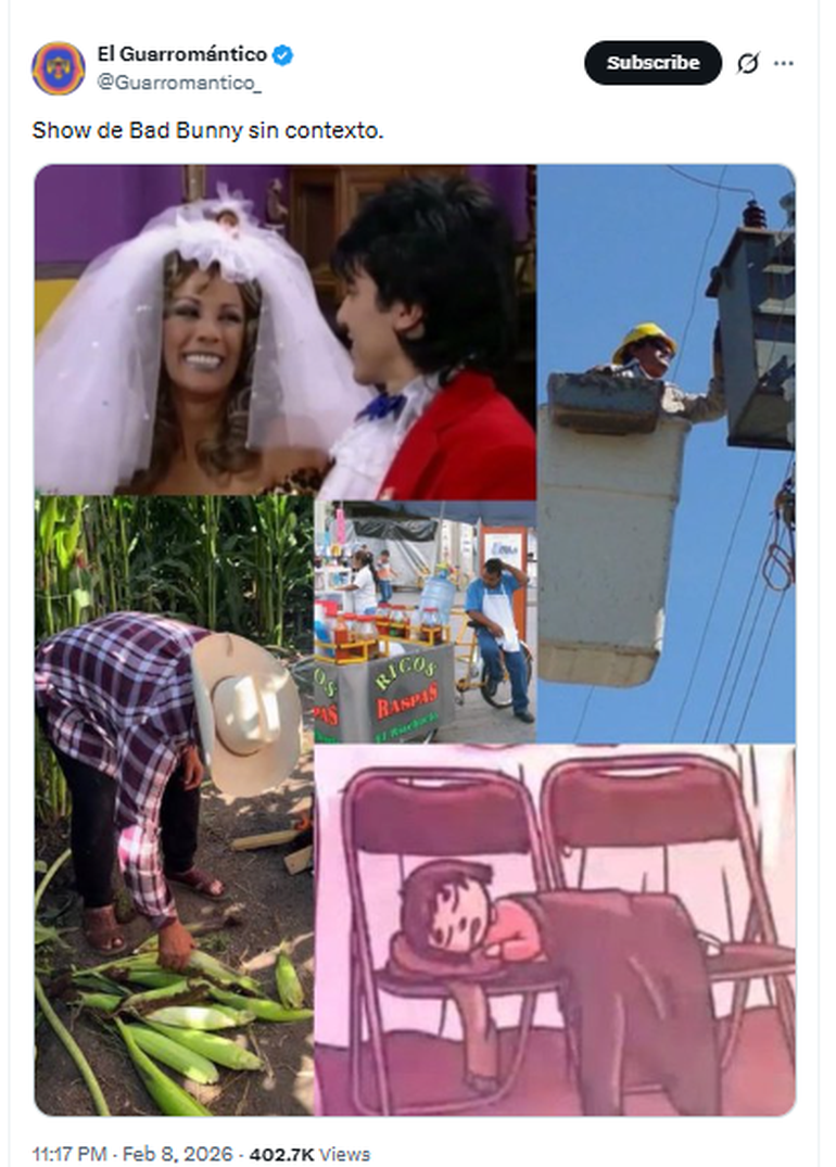 Durante el descanso del choque entre New England Patriots y los Seattle Seahawks, Benito Antonio Martínez Ocasio (Bad Bunny), realizó una presentación que trascendió lo musical. El show estuvo plagado de guiños a la comunidad latina, en medio de polémicas y críticas de figuras conservadoras de Estados Unidos, entre ellas el presidente Donald Trump.