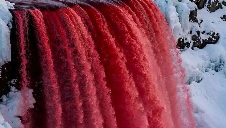 El fenómeno es conocido como “cascada de sangre” y tiene una explicación científica documentada. Las imágenes del lugar se difundieron en distintos medios y generaron impacto. La escena parece salida de una ficción.