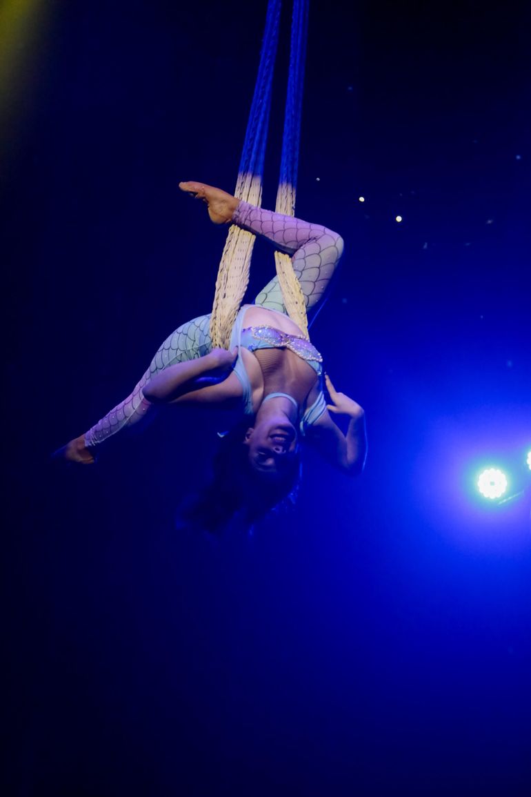 Cirque XXI 360° cuenta con más de 20 artistas en escena y propone una experiencia inmersiva basada en recursos técnicos como sonido envolvente e iluminación sincronizada, en combinación con acrobacias, danza y música en vivo.
