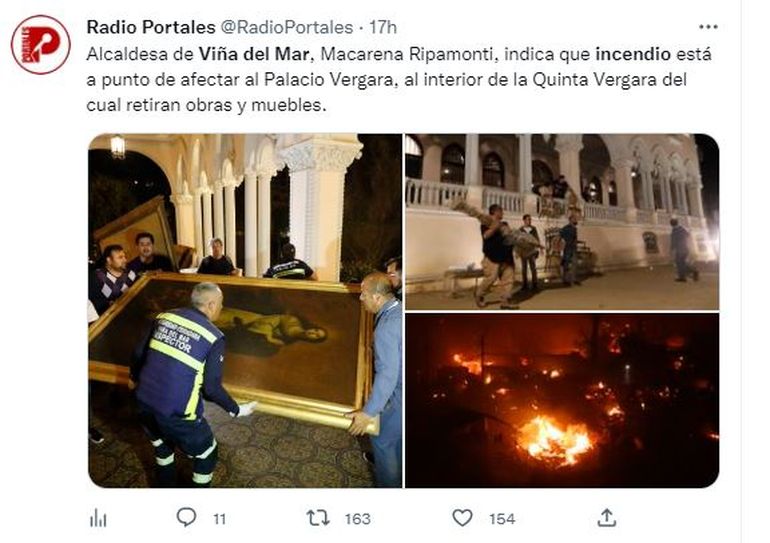 "Nuestra prioridad como Gobierno de Chile está en la seguridad de las personas y seguiremos desplegando todos los recursos necesarios para controlar la emergencia", agregó el mandatario.