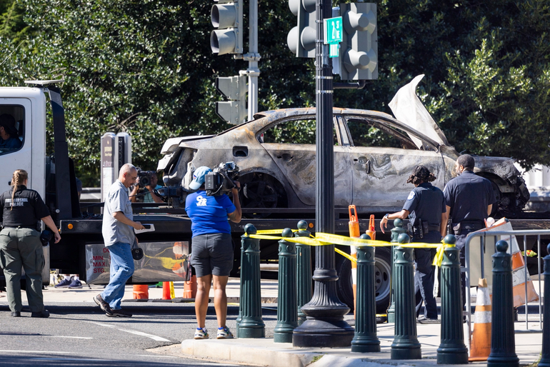 El incidente ocurrió poco antes de las 4 de la mañana en una barricada de vehículos colocada en la calle East Capitol NE y la calle 2nd SE de Washington. Las autoridades dijeron que el hombre, cuya identidad no ha sido revelada, se estrelló contra la barricada y que cuando salía del coche, el vehículo quedó envuelto en llamas. El hombre entonces abrió fuego, efectuando varios disparos al aire mientras la policía se movilizaba.