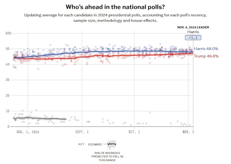 Hacia la medianoche de Argentina, el republicano Donald Trump logra una considerable ventaja frente a la demócrata Kamala Harris, con 170 electores contra 99.