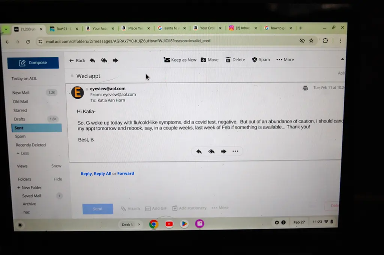 A su vez, había mencionado en un correo electrónico a su masajista que Hackman se había despertado el 11 de febrero con síntomas similares a la gripe o al resfriado, pero que una prueba de COVID fue negativa y que tendría que reprogramar su cita para el día siguiente "por precaución".