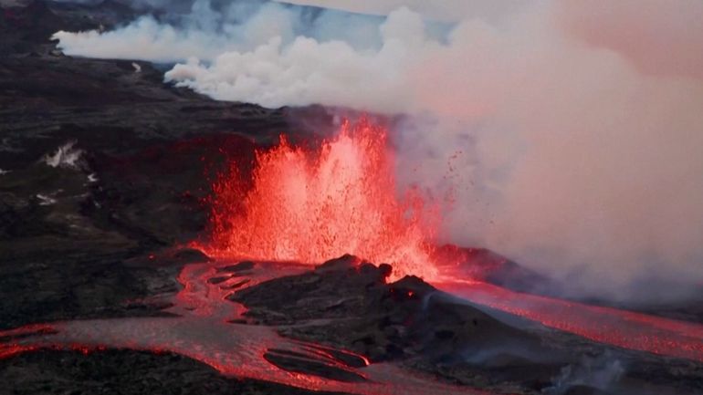 Los geólogos dicen que las personas y las propiedades en el área bajo la erupción no corren riesgo por ahora. “Los ríos de lava de las dos fisuras más altas se mueven ladera abajo, pero están parados a unos 10 kilómetros de Saddle Road (la principal carretera a los pies del flanco norte de la montaña)”.