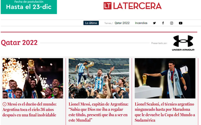 En Chile, el diario La Tercera consignó que "Messi es el dueño del mundo: Argentina toca el cielo 36 años después en una final inolvidable". El Mercurio, un periódico tradicional chileno, publicó: "Argentina y Messi tocan la gloria: Ganan en penales una épica final a Francia y conquistan el tercer Mundial de su historia".