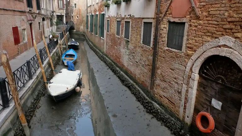 La advertencia de los científicos llega en un momento en que Venecia, donde las inundaciones suelen ser la principal preocupación, se enfrenta a mareas inusualmente bajas que están haciendo imposible que góndolas, taxis acuáticos y ambulancias naveguen por algunos de sus famosos canales.