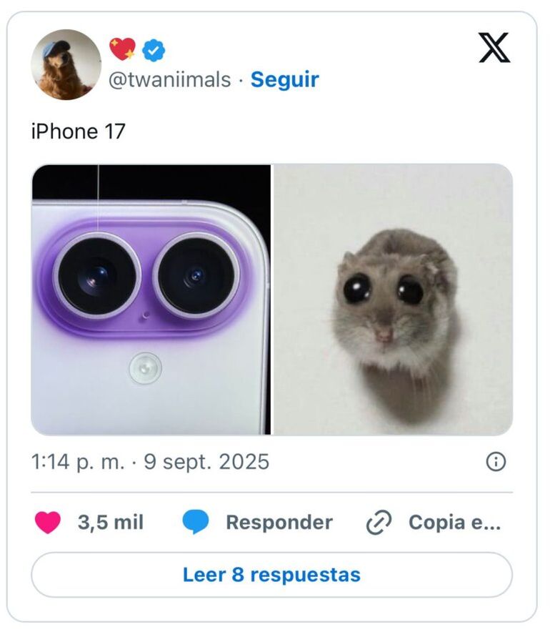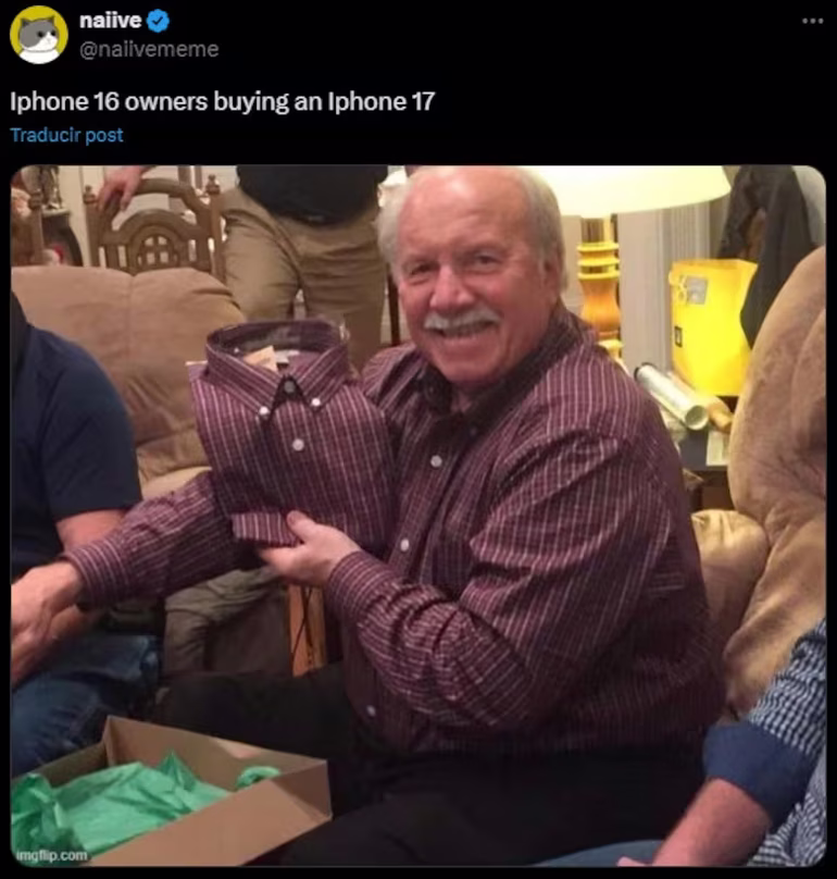 Desde el primer anuncio, la plataforma X se inundó de publicaciones sobre el iPhone 17. Los usuarios hicieron hincapié en distintos aspectos del teléfono, desde la resistencia del equipo hasta el diseño. Algunos memes destacaron que, como sus predecesores, el dispositivo necesitará cuidados especiales para no dañarse con caídas, algo que ya se ha convertido en un chiste recurrente entre los seguidores de Apple.