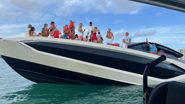 El exceso de lujo y la sobrecarga de pasajeros terminaron en un inesperado naufragio frente a las costas de Miami. Nadie resultó herido, pero las imágenes del accidente recorren el mundo.