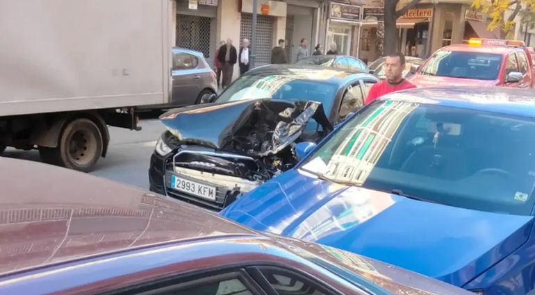 En un primer momento, roza un auto estacionado, pero luego choca contra otro que estaba en la puerta de un garaje, generando un choque múltiple entre dos autos más, según informó la prensa local.