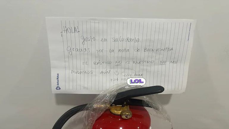 En la nota manuscrita que apareció en la puerta de entrada de la nueva casa de la mujer argentina, podía leerse: “Este plástico es de vuestra mudanza. Hacer el favor tirar las cosas”.