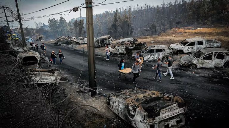 Como consecuencia de los incendios, más de 20.000 personas resultaron damnificadas, 817 viviendas destruidas y más de 40.000 hectáreas calcinadas en Ñuble y Biobío, a 400 y 500 kilómetros al sur de la capital.