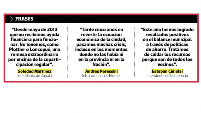 Es lo que sucede en los municipios de Plottier, Zapala y Centenario, que en estos dos años tuvieron que armar varias estrategias para sacar la cabeza a flote y buscar una autonomía financiera, sin el apoyo constante del gobierno provincial.