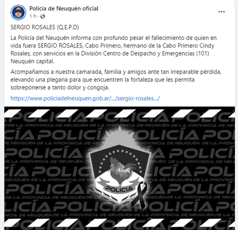 Por otra parte, criticó que la familia no fue avisada del hecho y que en su lugar, se enteró de lo ocurrido "por una FM de Chos Malal". Además, reclamó que la pareja del efectivo no recibió acompañamiento tras lo presenciado. "A ella la dejaron sola, ella quedó deambulando, no le dieron la contención necesaria", señaló.