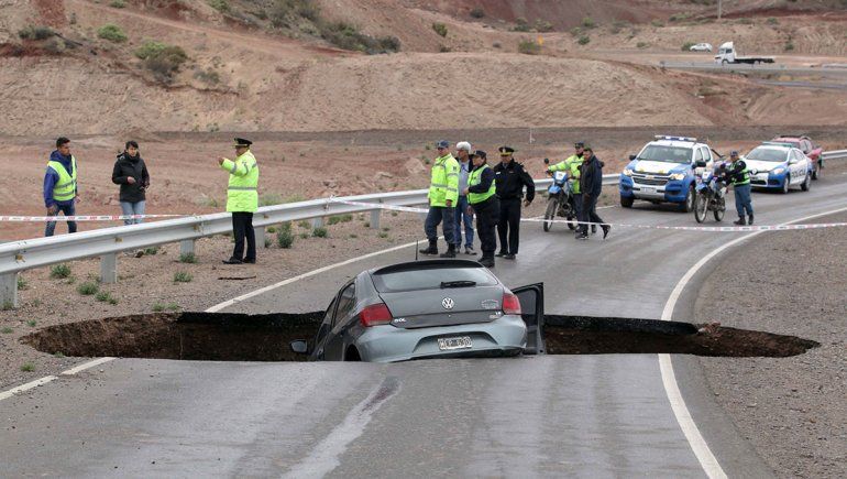 Increíble: un enorme pozo en la Ruta 7 se "tragó" un auto